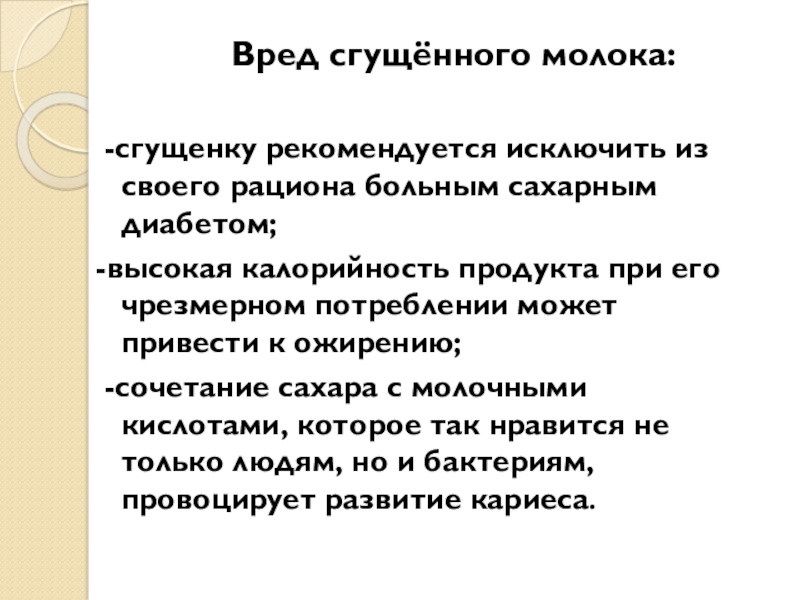 Найти информацию о вреде и пользе сгущённого молока для организма человека .