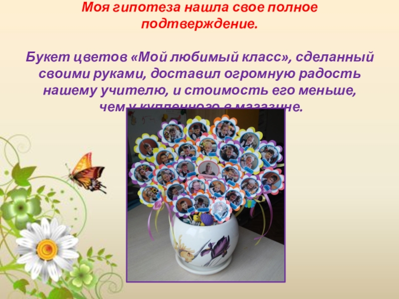 Предположим, что букет цветов «Мой любимый класс», сделанный своими руками, доставит огромную радость нашему учителю и стоимость его будет меньше,