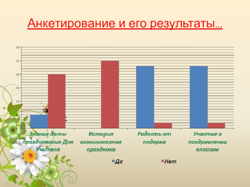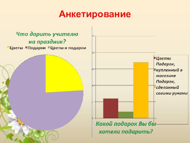 также анализируя результаты проведенного анкетирования одноклассников, я еще раз подтвердил свое мнение, что лучшим подарком учителю станут цветы и подарок,