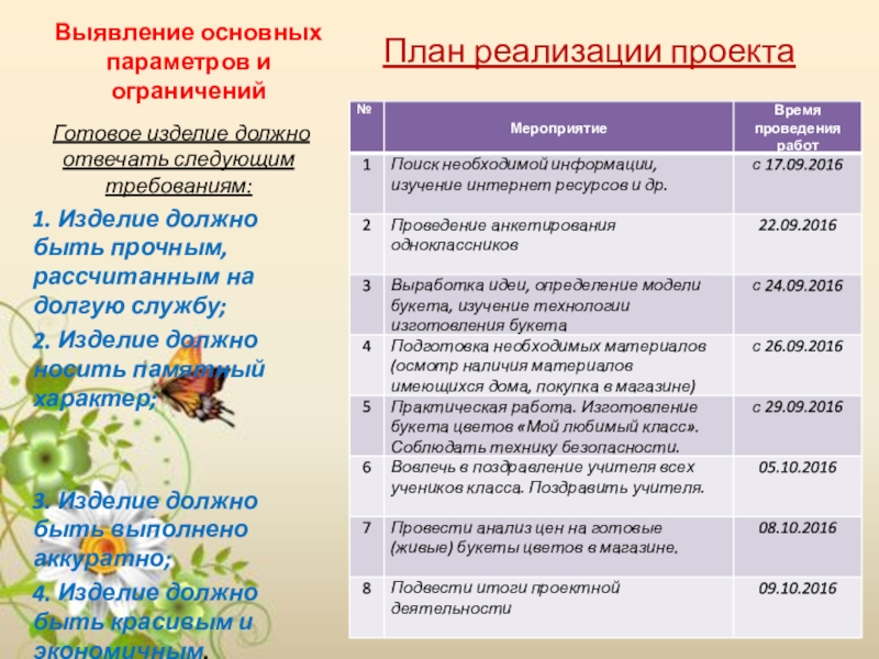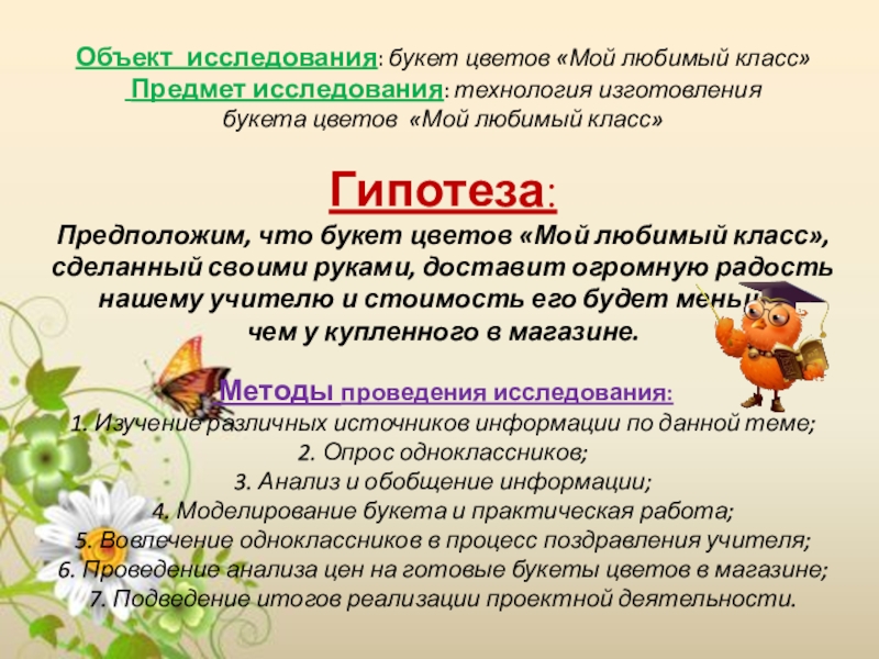 Слайд 4Объект исследования: букет цветов «Мой любимый класс»
