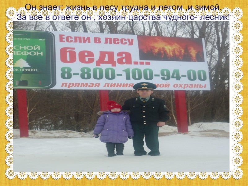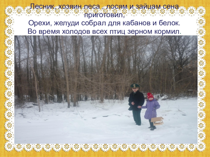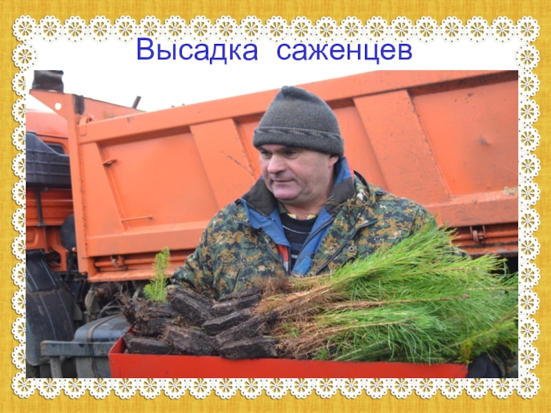 Лесники - высаживают саженцы; следят за тем, чтобы лес вырубали только на отведённых для этого участках;