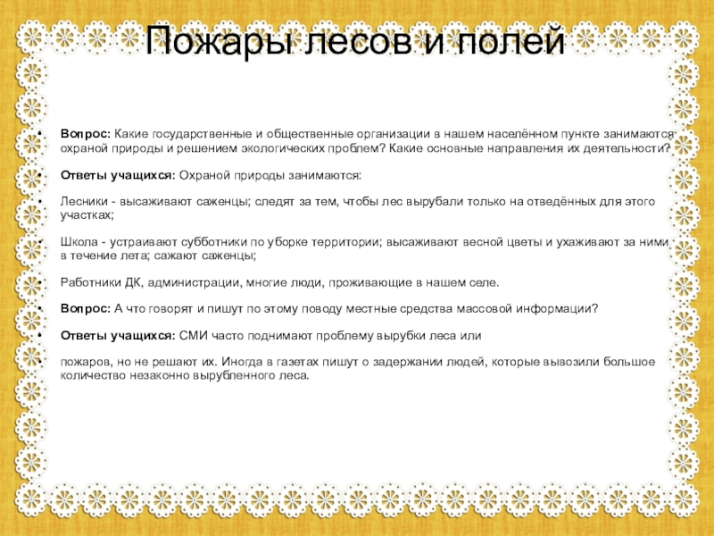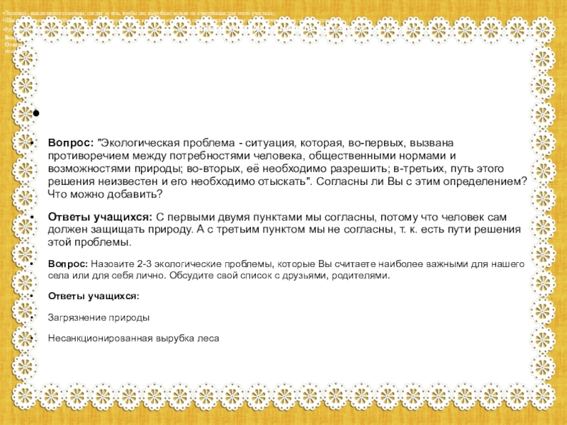 Ответы учащихся: СМИ часто поднимают проблему вырубки леса или