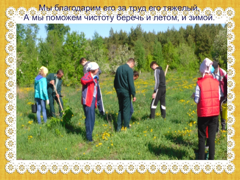 Школа - устраивают субботники по уборке территории; высаживают весной цветы и ухаживают за ними в течение лета; сажают саженцы;