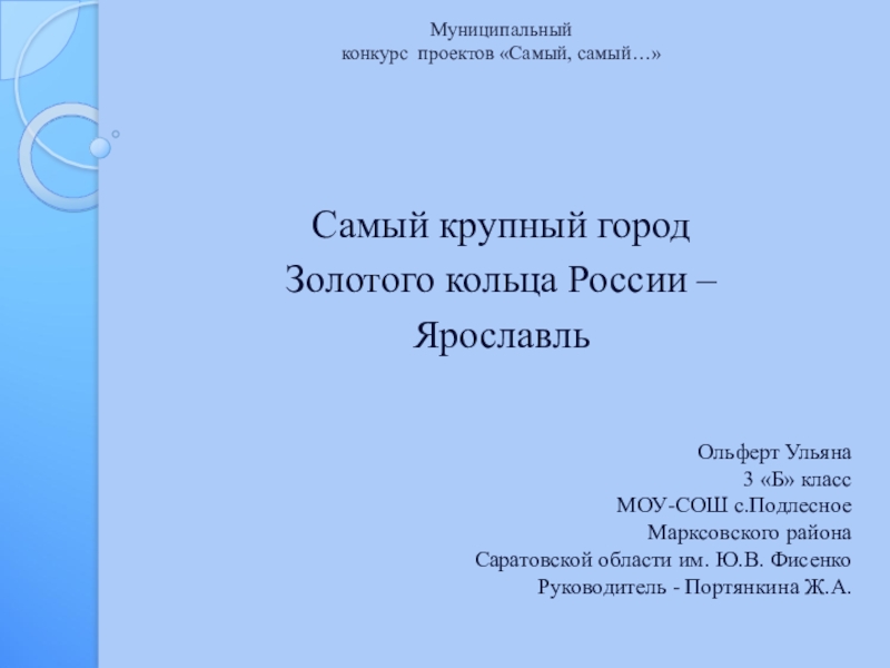 Муниципальный конкурс проектов «Самый, самый…»    Самый крупный город Золотого кольца России