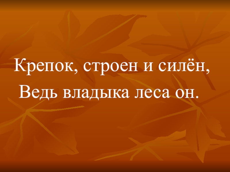 Крепок, строен и силён, Ведь владыка леса он.