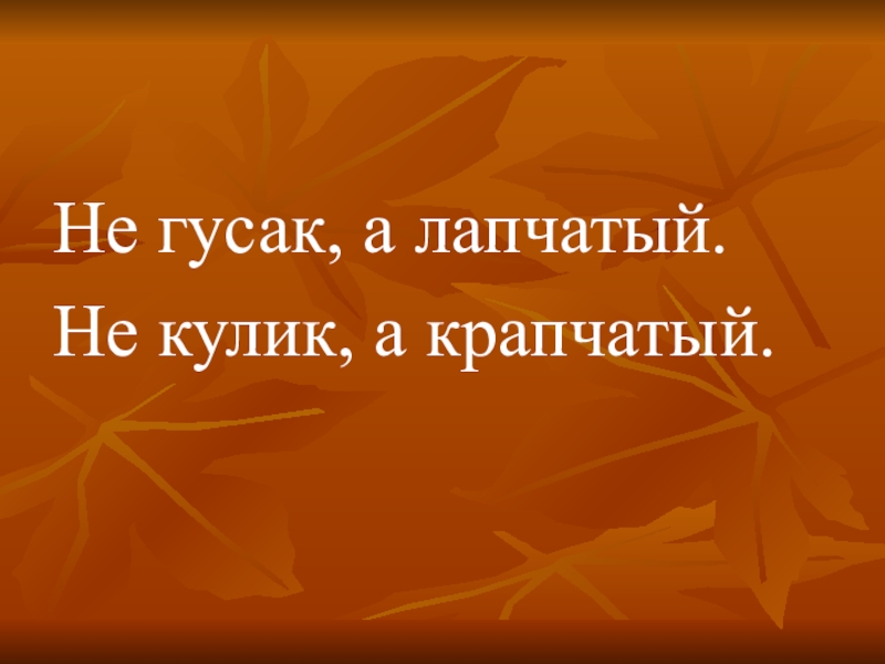 Не гусак, а лапчатый.Не кулик, а крапчатый.