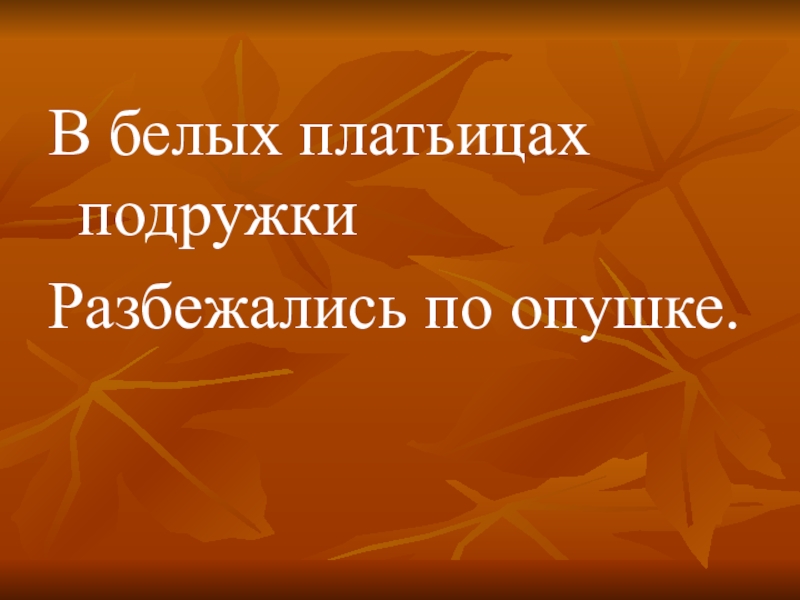 В белых платьицах подружки Разбежались по опушке.
