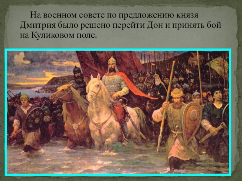 На военном совете по предложению князя Дмитрия было решено перейти Дон и