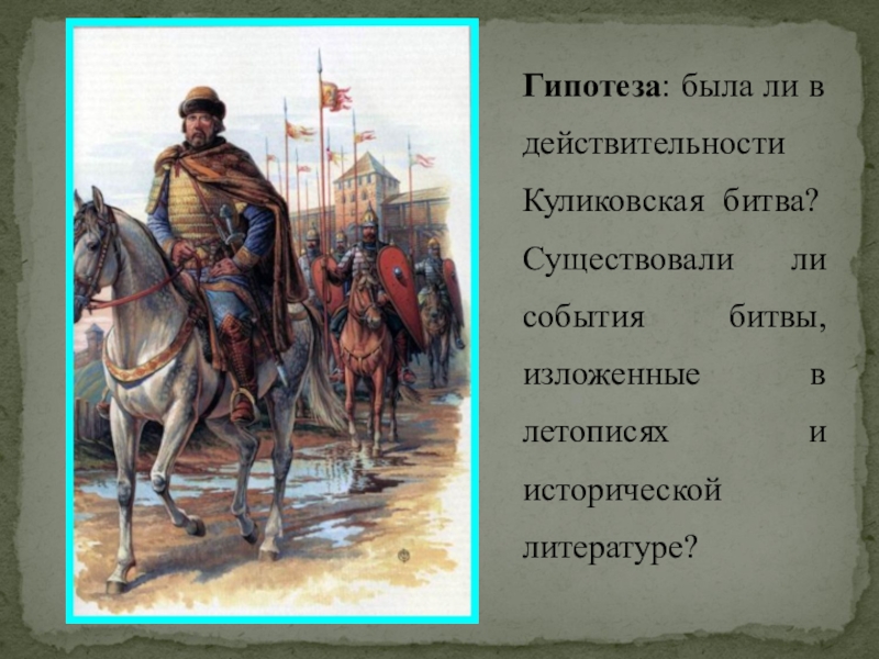 Слайд 5Гипотеза: была ли в действительности Куликовская битва? Существовали ли события битвы,