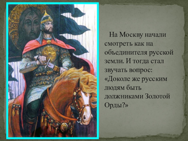 русской земли. И тогда стал звучать вопрос: «Доколе же русским людям быть должниками Золотой Орды?»