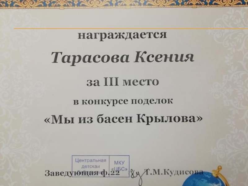 250 – летию со дня рождения И.А Крылова. И так как я увлекаюсь лепкой, я изготовила поделку из пластилина к басни «Ворона и Лисица»и заняла III место.