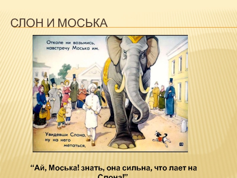 “Ай, Моська! знать, она сильна, что лает на Слона!”.