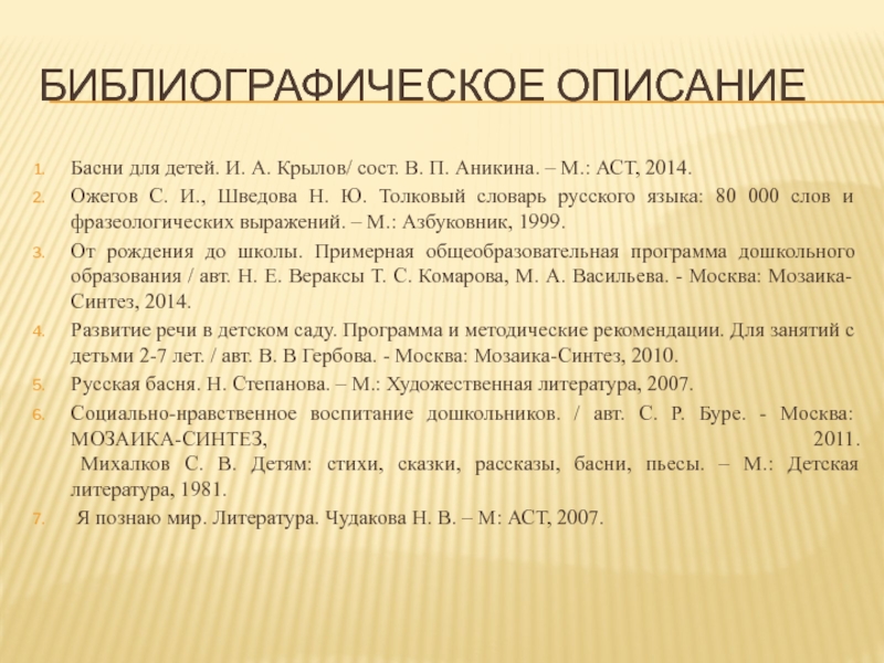 нравственное воспитание. И важным помощником воспитателя в этом вопросе является художественная литература. Воспитывать в маленьком ребёнке чувство отзывчивости, коллективизма, доброжелательности, умение проявлять заботу о товарище и многие другие важные качества личности помогают в наше беспокойное время - басни.