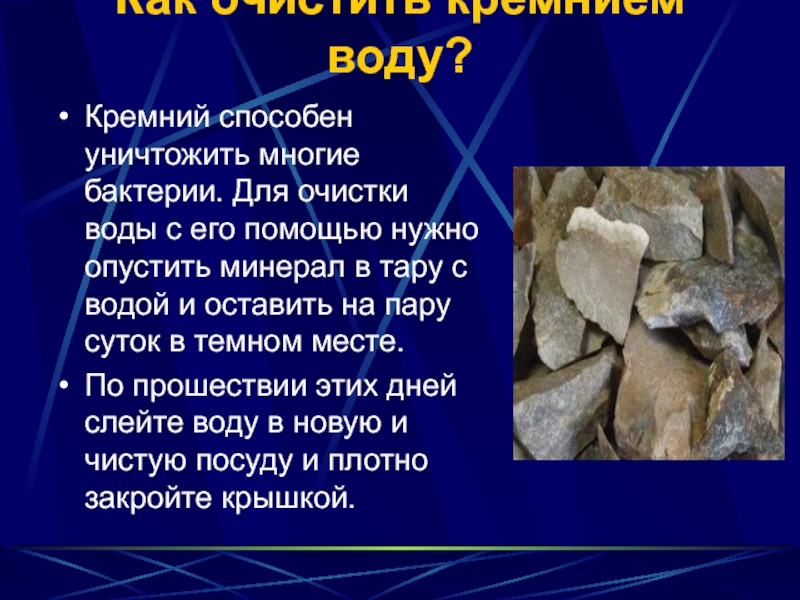 Кремний способен уничтожить многие бактерии. Для очистки воды