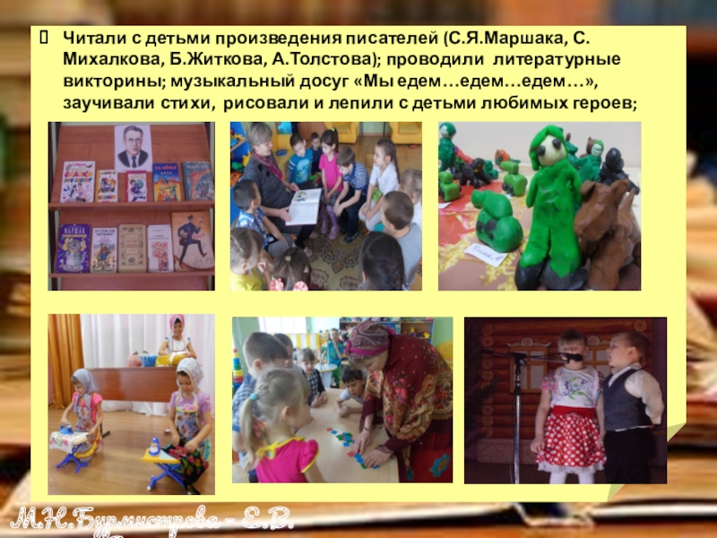 Слайд 10Читали с детьми произведения писателей (С.Я.Маршака, С.Михалкова, Б.Житкова, А.Толстова); проводили литературные викторины;