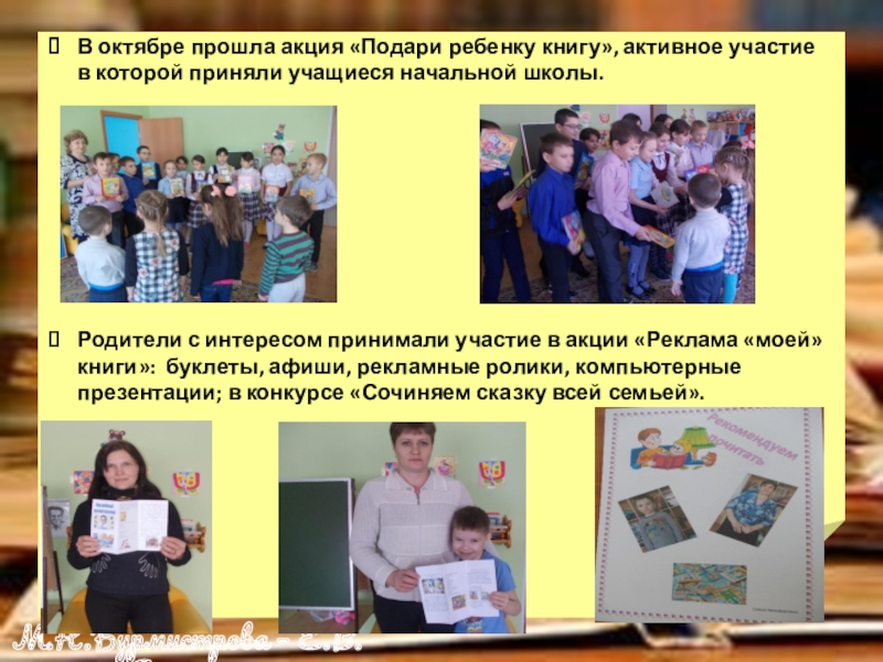 Слайд 14В октябре прошла акция «Подари ребенку книгу», активное участие в которой