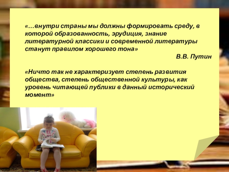 Слайд 2«…внутри страны мы должны формировать среду, в которой образованность, эрудиция, знание