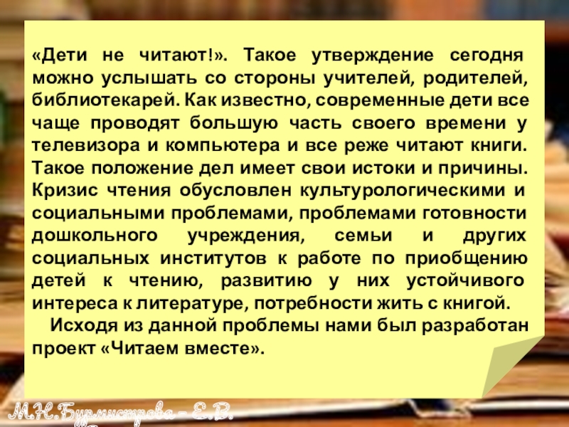 Исходя из данной проблемы нами был разработан проект «Читаем вместе».