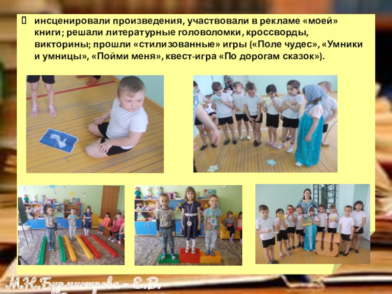 викторины; прошли «стилизованные» игры («Поле чудес», «Умники и умницы», «Пойми меня», квест-игра «По дорогам сказок»).