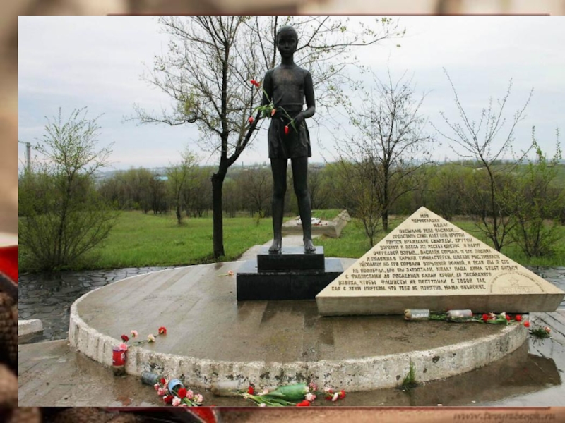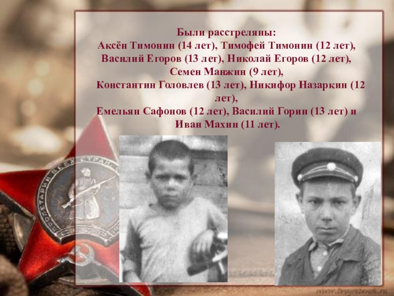 «В тихое утро холодного ноябрьского дня партизанский отряд котельниковцев окружили враги. На бруствере окопа сидел мальчик лет 13—это был Миша. Воевал он вместе с отцом. В отряде его прозвали «дубок».