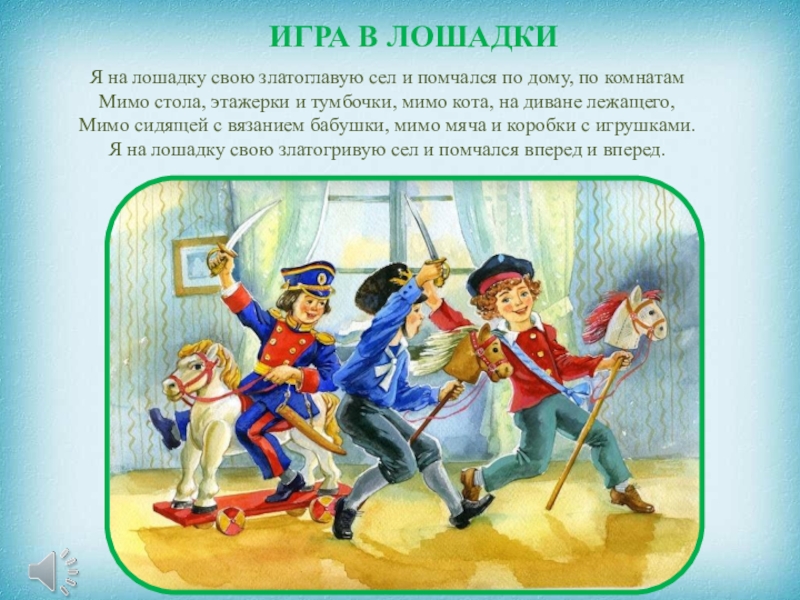 Я на лошадку свою златогривую сел и помчался вперед и вперед.