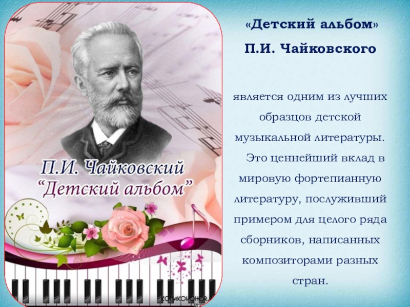 - прививать любовь к классической музыке, к творчеству П. И. Чайковского
