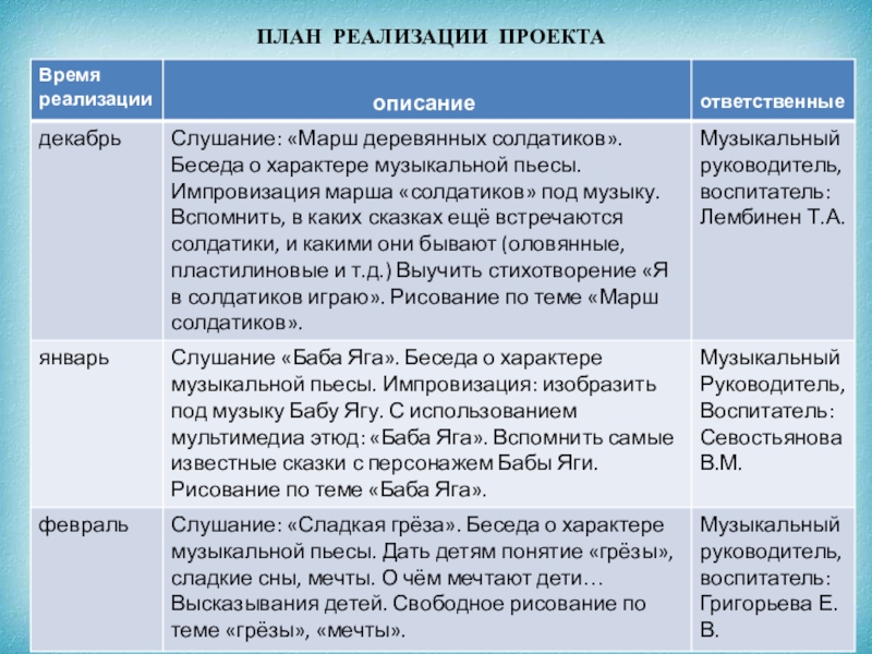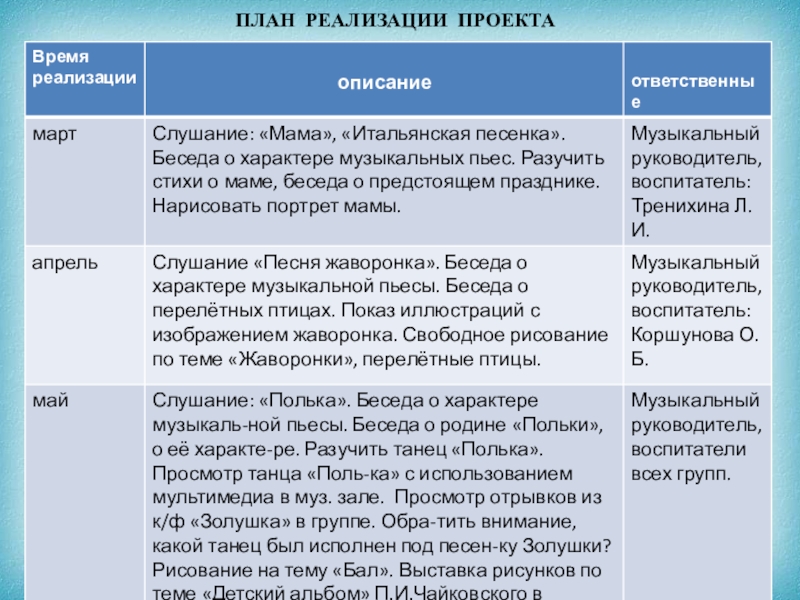 музыкального материала, стихов и иллюстраций, составление плана реализации