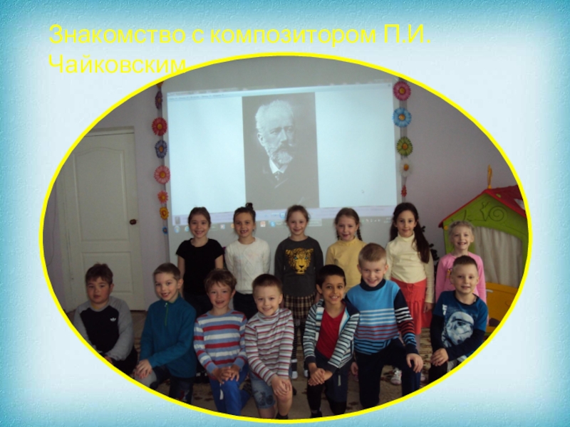 Слайд 12Знакомство с композитором П.И. Чайковским