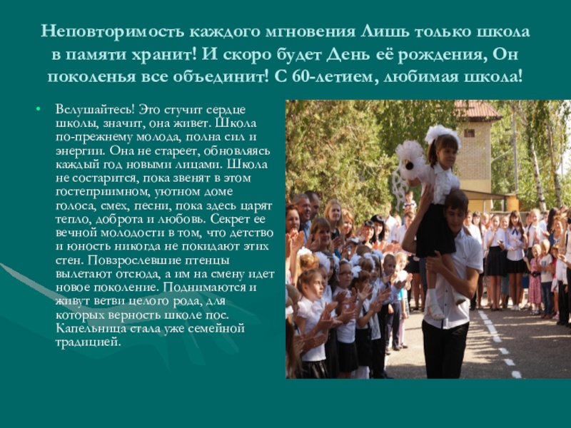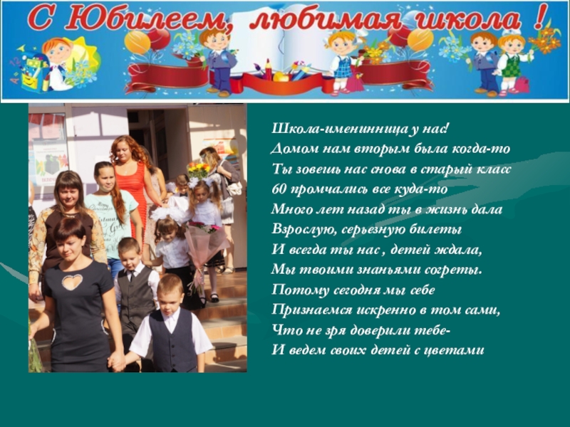 будет День её рождения, Он поколенья все объединит! С 60-летием, любимая школа!