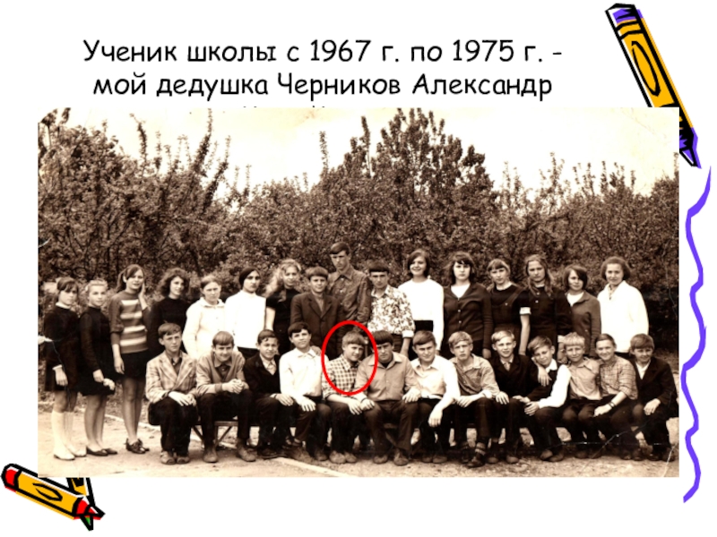 Слайд 21Ученик школы с 1967 г. по 1975 г. -мой дедушка Черников