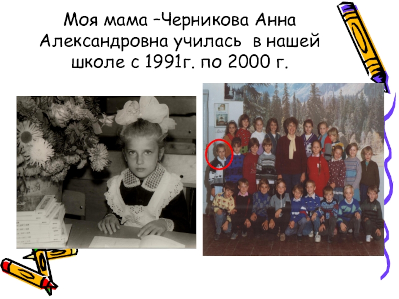 Слайд 23Моя мама –Черникова Анна Александровна училась в нашей школе с 1991г.