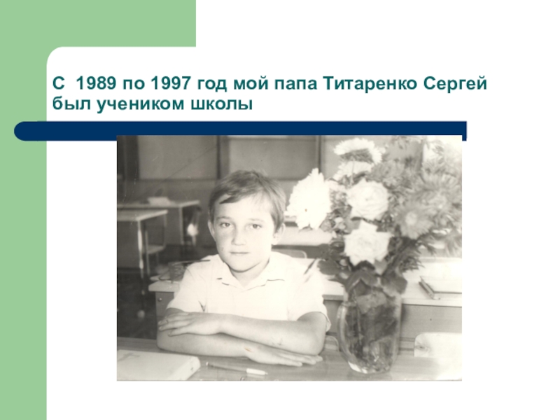Слайд 18С 1989 по 1997 год мой папа Титаренко Сергей был учеником