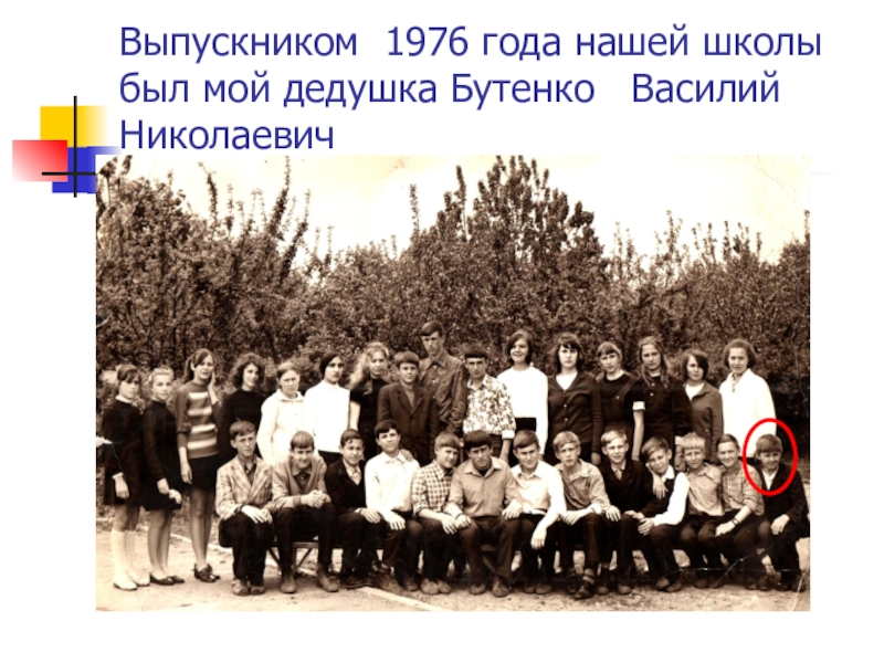 Слайд 26Выпускником 1976 года нашей школы был мой дедушка Бутенко Василий