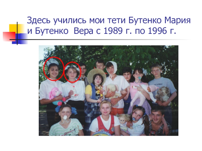 Слайд 27Здесь учились мои тети Бутенко Мария и Бутенко Вера с 1989