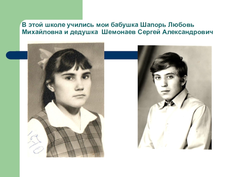 Слайд 17В этой школе учились мои бабушка Шапорь Любовь Михайловна и дедушка