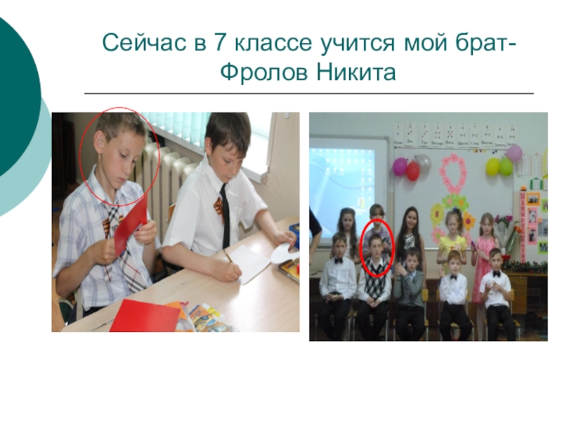 Слайд 34Сейчас в 7 классе учится мой брат- Фролов Никита