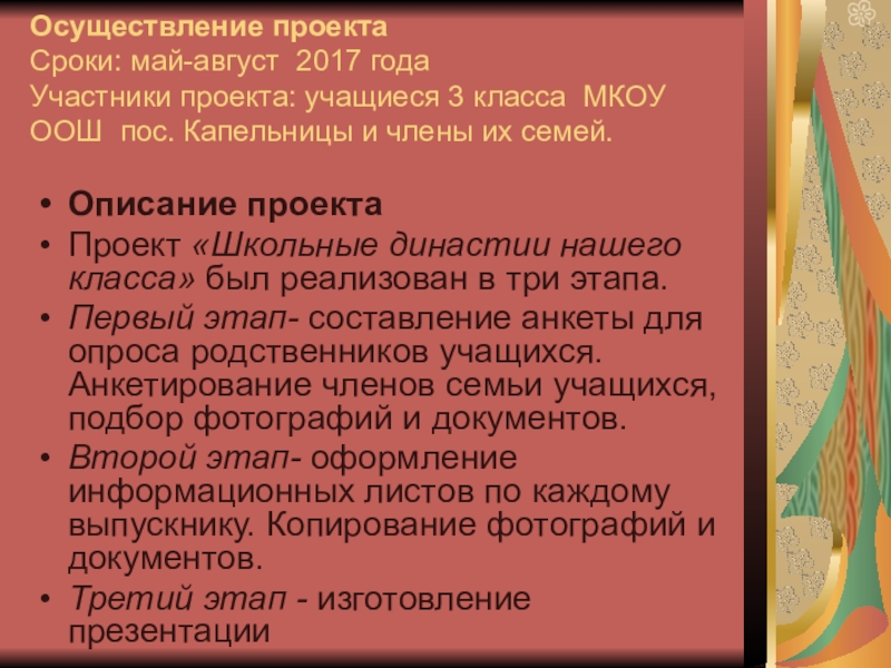 Проект «Школьные династии нашего класса» был реализован в три этапа.