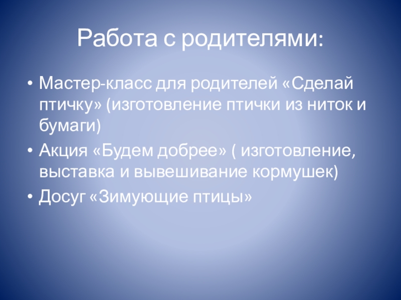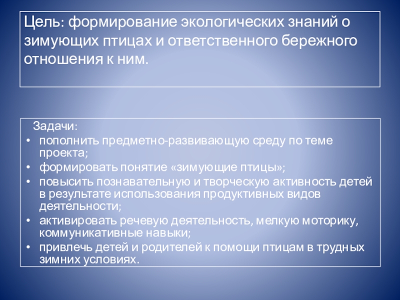привлечь детей и родителей к помощи птицам в трудных зимних условиях.