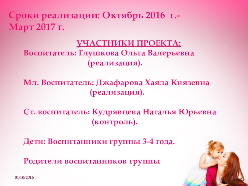 Сроки реализации: Октябрь 2016 г.- Март 2017 г.