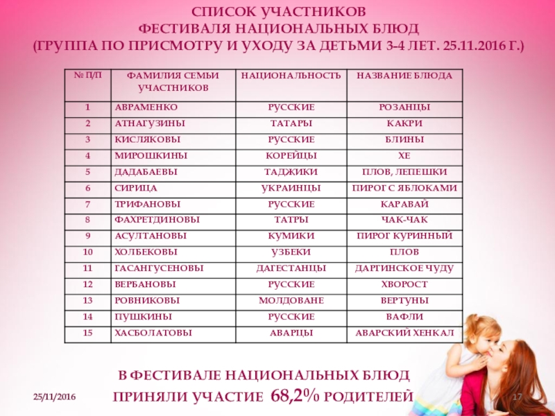 ПРИНЯЛИ УЧАСТИЕ 68,2% РОДИТЕЛЕЙ