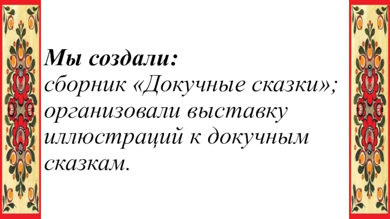 Слайд 18Мы создали: сборник «Докучные сказки»; организовали выставку иллюстраций к докучным сказкам.
