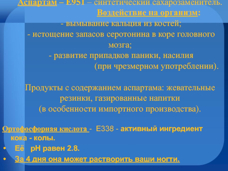 Ортофосфорная кислота - E338 - активный ингредиент кока - колы.