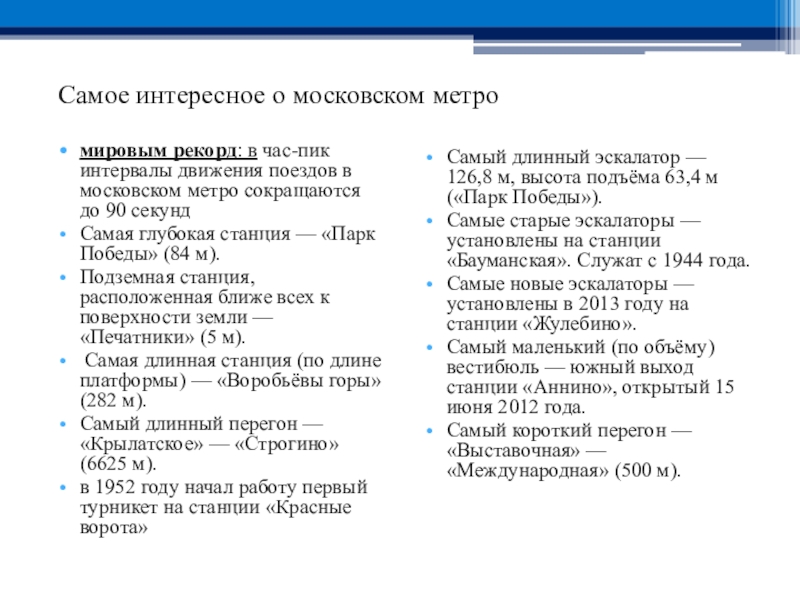Самое интересное о московском метро