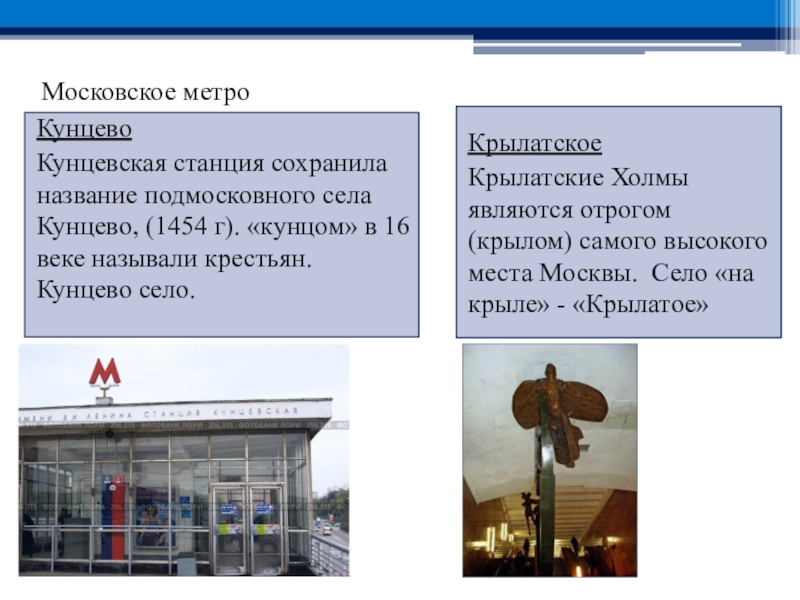 Крылатские Холмы являются отрогом (крылом) самого высокого места Москвы. Село «на крыле» - «Крылатое»
