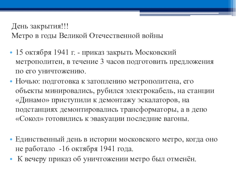Метро в годы Великой Отечественной войны