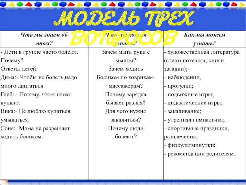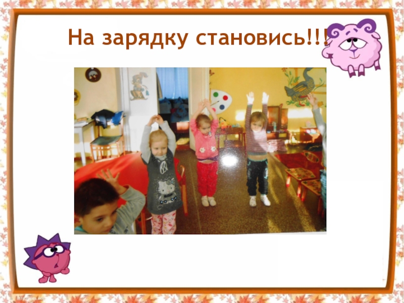 Следует, ребята, знать Нужно всем подольше спать. Ну а утром не лениться — На зарядку становиться!