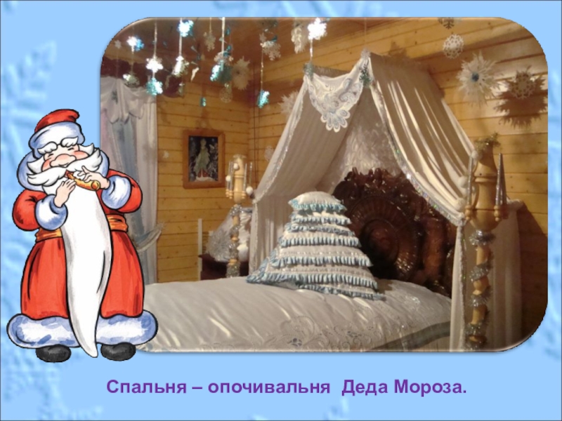 Слайд 16Спальня – опочивальня Деда Мороза.