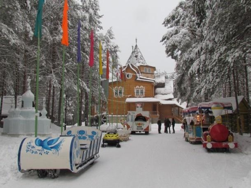 в сосновом бору на берегу реки Сухона. Путешествие в сказку начинается у резных ворот Резиденции (Вотчины), ведущих во владения сказочного волшебника.