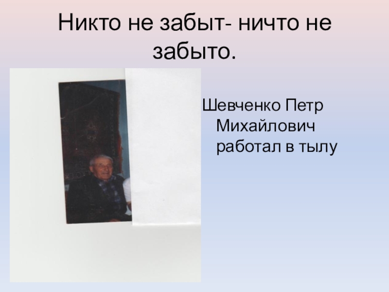 Никто не забыт- ничто не забыто.Шевченко Петр Михайлович работал в тылу