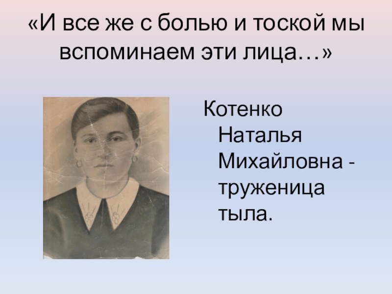 «И все же с болью и тоской мы вспоминаем эти лица…»Котенко Наталья Михайловна -труженица тыла.